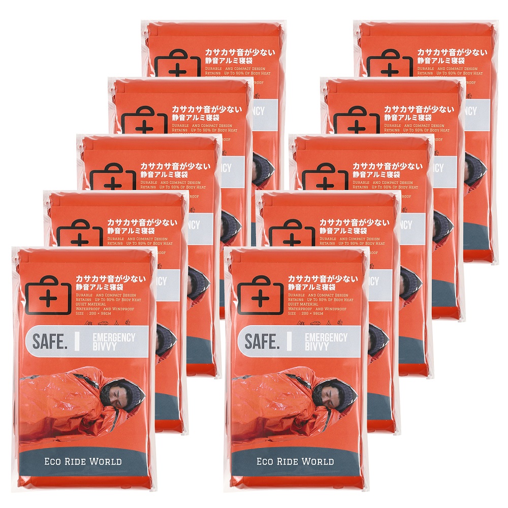 商品説明 | カサカサ音が少ない静音タイプの非常災害用のアルミ寝袋10個セットです。 防寒、保温性に優れていて、災害時や天候の急変時などに 身を守る緊急用寝袋です。 コンパクトで持ち運びやすく保管場所を取りません。 非常袋や車やバッグに常備しておけば、いざという時に寒さをしのぐことができ、大変便利です。