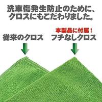 独自の洗浄成分が汚れを包み込み、浮き上がった汚れを専用マイクロファイバークロスですくい取る事で拭き取り時のキズの発生を抑えつつ、洗車と同時に独自の高光沢ワックス成分がボディに深いツヤと輝きを与えます。