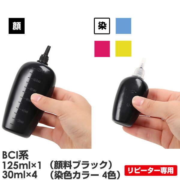 【BCI/XKI系5色共通】 XKI-N21+N20/BCI-301+300/381+380/371+370/351+350 Canon キャノン 用 純正用詰め替えインク (リピート用) 125ml×1本 30ml×4本 合計5本