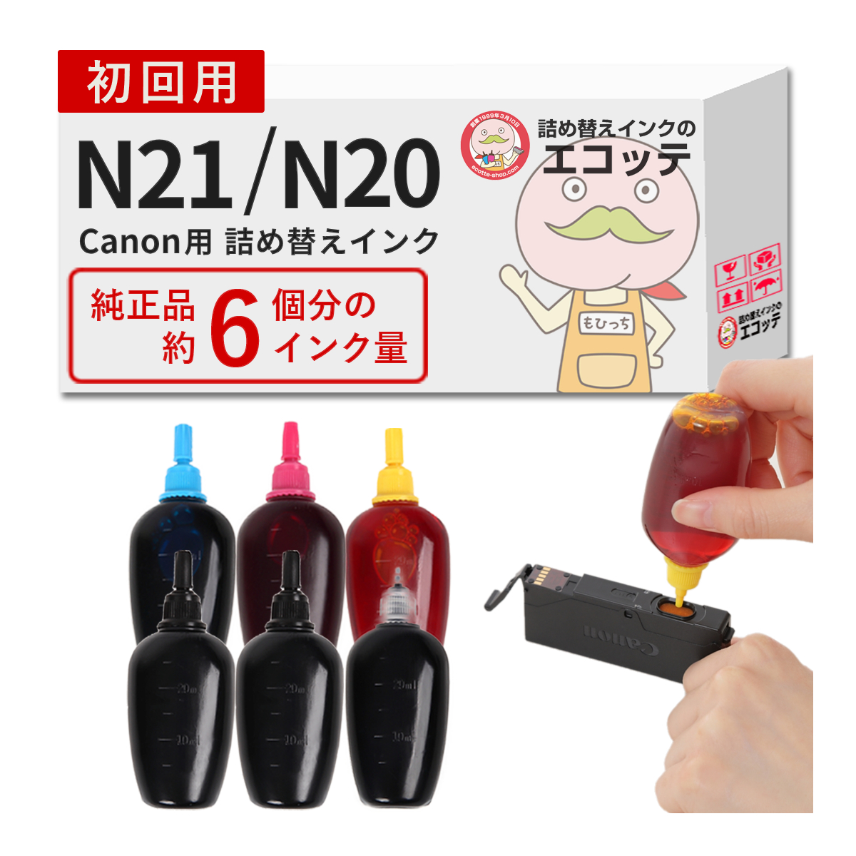 【純正品2個分】 XKI-N21+20/5MP Canon キャノン 用 純正用詰め替えインク ビギナーセット 30ml×5色(6本) XKI-N20 XKI-N21 / XKI-N20XL XKI-N21XL XK130 XK120