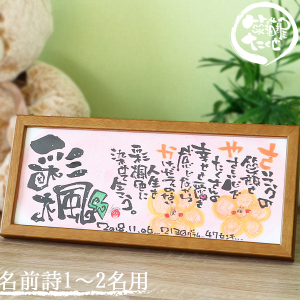 出産祝い 結婚祝い 退職祝い プレゼント 誕生日 木製フレーム 横長320 2名まで制作OK 名前詩 名前ポエム 成人 還暦 新築 祝い 結婚記念日
