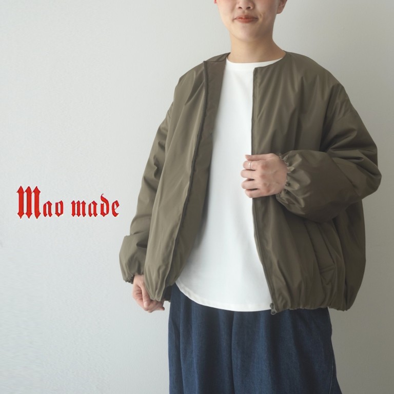 マオメイド mao made ブルゾン ジャケット コクーン ワイド ビッグ シルエット ノーカラー クルーネック 中わた MA-1 ライト アウター 2025年秋冬物 セール
