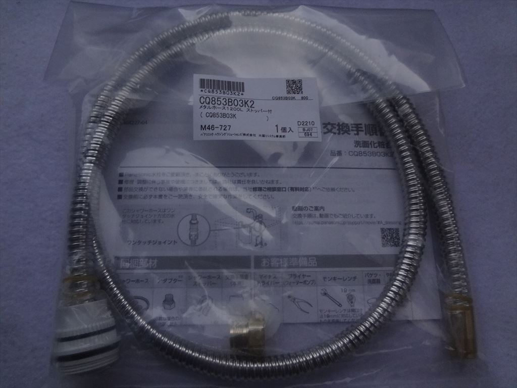 新品 パナソニック 純正 型番:CQ853B03K2 シャワーホース メタルホース1200L ストッパー付 部品 (CQ853B03K1の代替品)です。