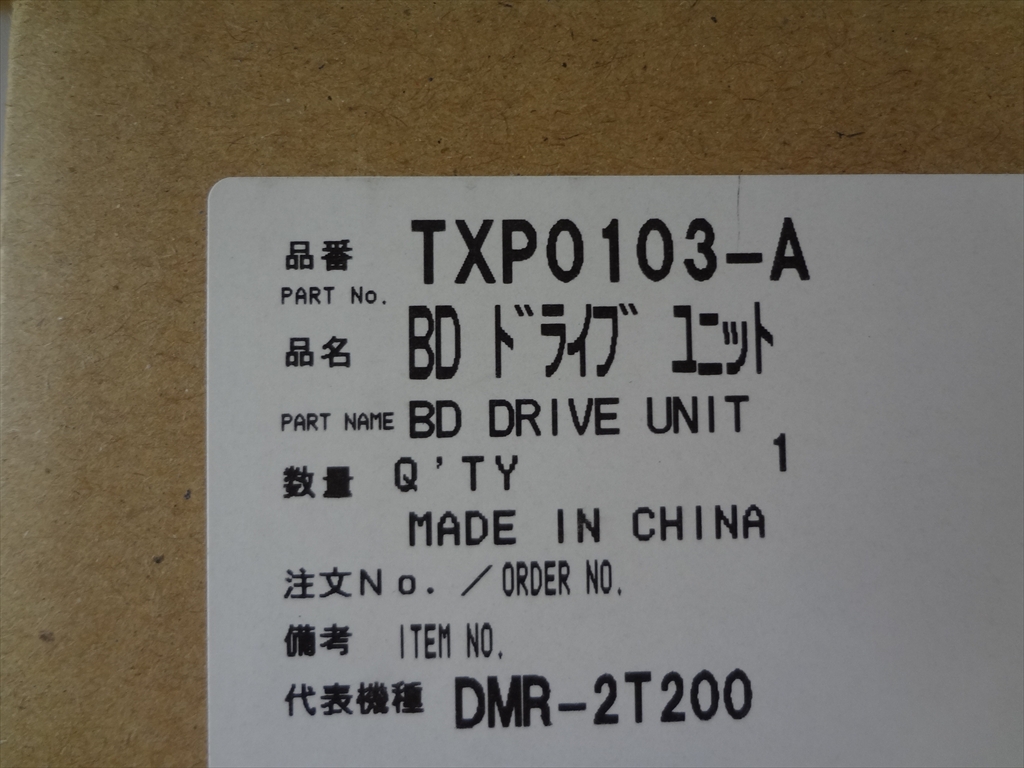 新品 パナソニック 純正 ブルーレイレコーダー BDドライブユニット 部品 品番:TXP0103-A(TXP0103の後継品)です。
