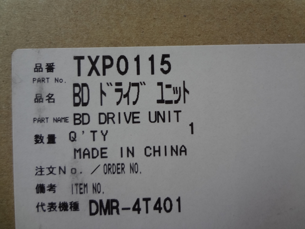 新品 パナソニック 純正 DMR-4W201用 BDドライブユニット 部品 TXP0115です。