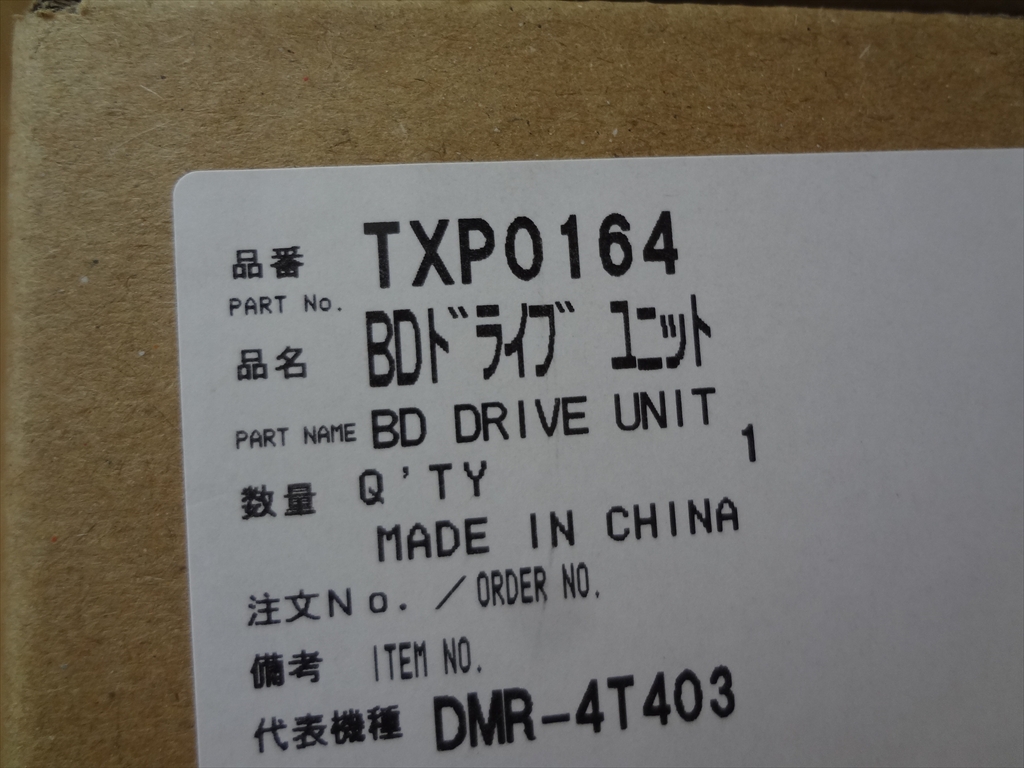 新品 パナソニック 純正 DMR-4T203 DMR-4T403用 ブルーレイレコーダー BDドライブユニット 部品 TXP0164(TXP0163の後継品)です。