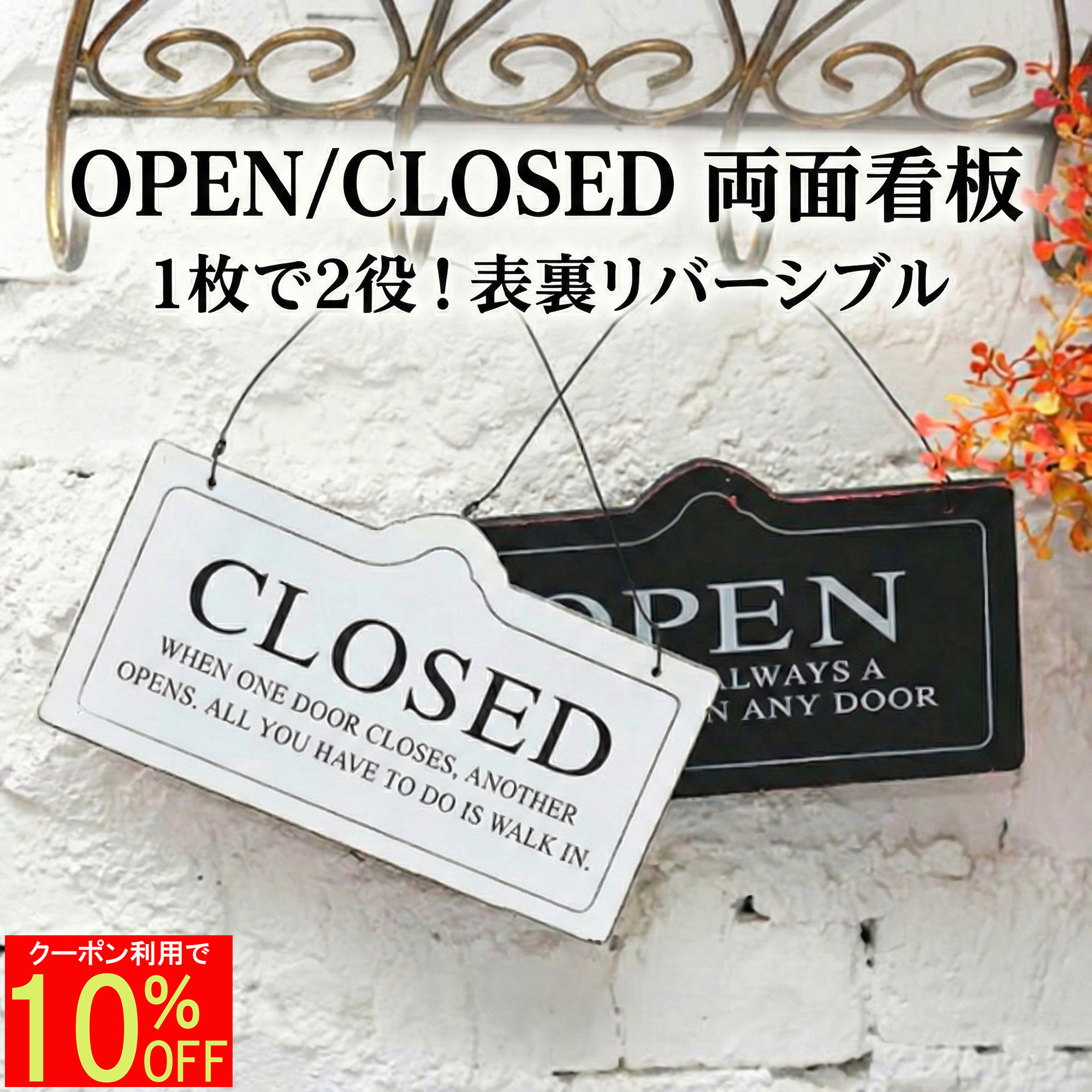 オープン クローズ プレート 看板 ボード OPEN CLOSED 開店 閉店 サインプレート アンティーク おしゃれ 両面 木製 お店 カフェ