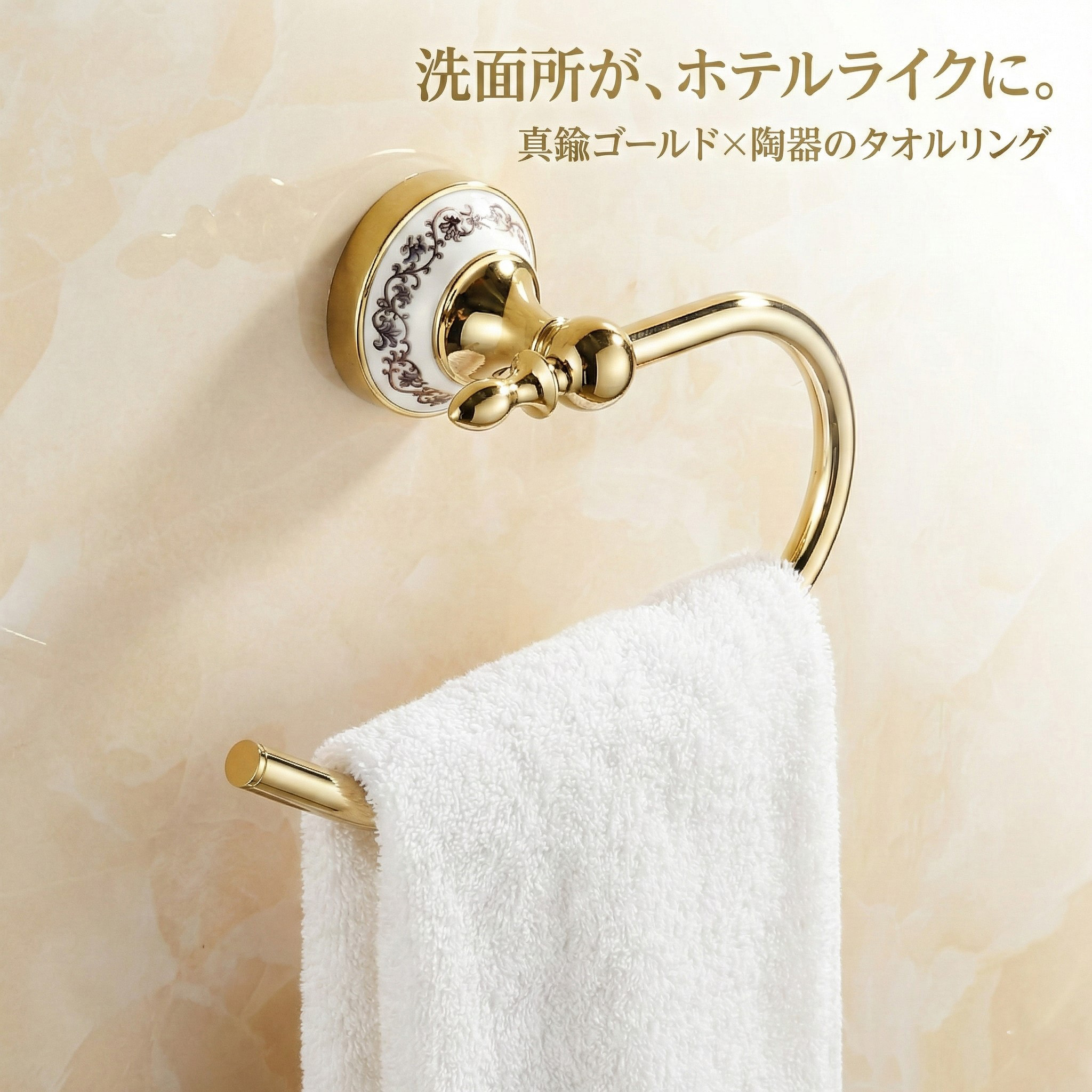 タオルリング タオルハンガー タオル掛け ふきん掛け トイレ キッチン 洗面所 壁 ネジ ステンレス アイアン 真鍮風 おしゃれ