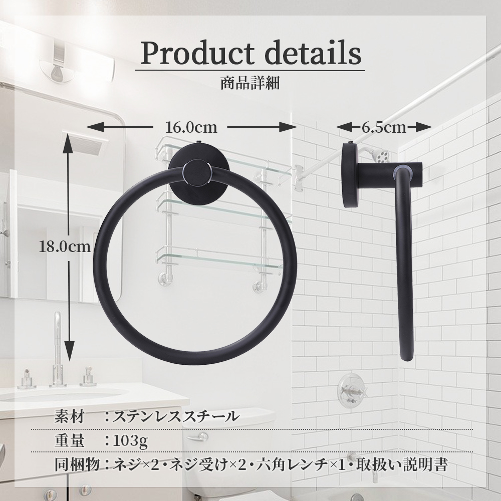 【関連ワード】 タオルリング タオルハンガー タオル掛け ふきんかけ タオル干し バスタオル タオルバー 石膏ボード 吸盤 マグネット ネジ 壁 アイアン ステンレス 木製 真鍮 金 黒 銀 白 ブラック ゴールド シルバー ホワイト トイレ キッチン 浴室 風呂 バス 洗面所 台所 おしゃれ 送料無料