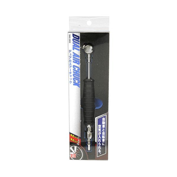 英式バルブ・米式バルブに適合するデュアルチャックで、自動車と自転車に空気が入れられます。