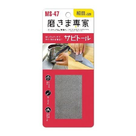※ こちらの画像は代表画像となります。部品や類似品等の場合があります。型番と商品名をご確認下さい。 サビトールはドイツ生まれの安全、無害な弾性クリーナーです。 消しゴム感覚でご使用下さい。 サビ、汚れを落とします。 消しゴムタッチでサビ・汚れを除去!!シンクの汚れ・自転車のサビ・スキースノーボードのサビ・包丁の汚れやサビ・タイル目地の汚れに!!細目(#320)上手な使い方…(1)サビトールをそのまま使用 【●木工作の仕上げ ●塗料落とし ●自転車のサビ取り ●タイル目地の汚れ落とし】 (2)サビトールを水につけて使用 【●ナイフ・包丁類のサビ落とし ●水道の蛇口のサビ落とし ●流し台のサビ、汚れ落とし】 (3)サビトー