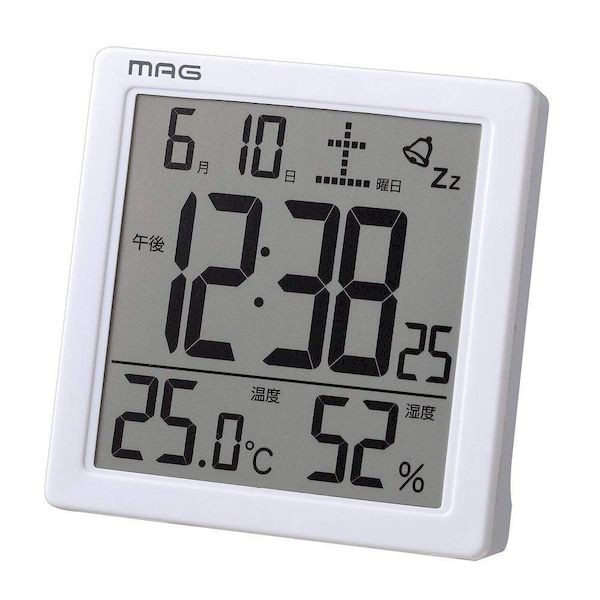 ●見やすい温度湿度表示付きクロック。 ●非電波式のデジタル目覚まし時計です。 ●ボタンを探さなくてもいいタッチセンサー式ライト機能付きです。