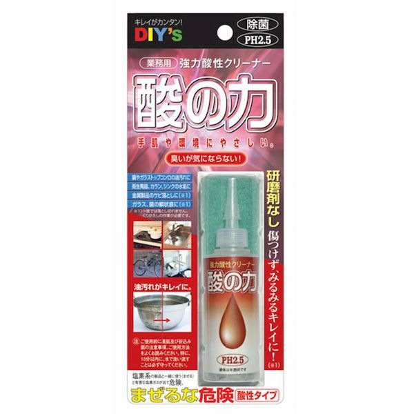 ●研磨剤なしで、傷付けずに汚れを落とせる強力強酸クリーナーです。