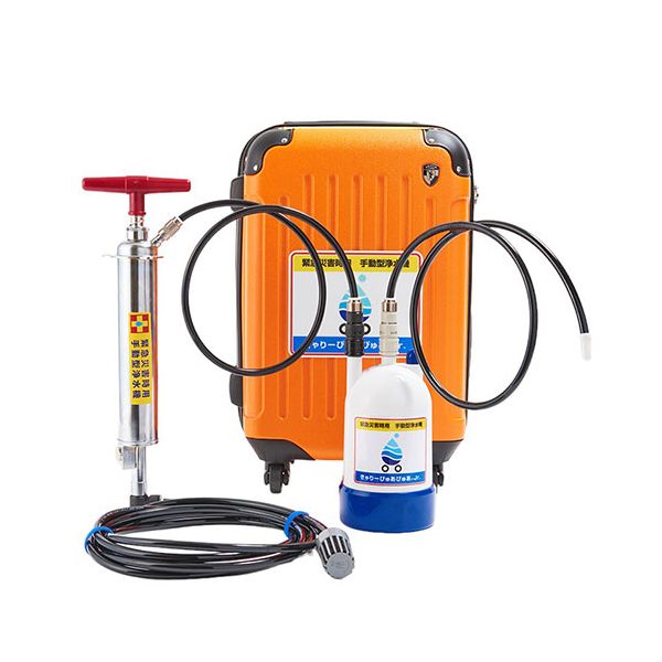 キャリーを開けたら1分で浄水! 災害の備えに・BCP対策に。生活水の確保ならJrにお任せ! 電力が不要の手動タイプ