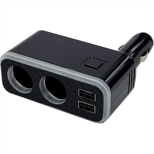 【商品説明】 ●ソケット前面が全方向へ華やかに輝く。 ●レインボーLED内蔵で様々な発光パターンが楽しめるダイレクトソケット。 ●iPhone/iPad、スマートフォン/タブレット等の様々な端末を同時に2台充電可能。 ●ダイレクトソケット2口。 ●USB−Aポート×2。 ●出力合計4.8A。 ●12−24V対応。 【商品仕様】 ●本体サイズ(約):W90×H30×D118mm ●パッケージサイズ(約):W110×H180×D50mm