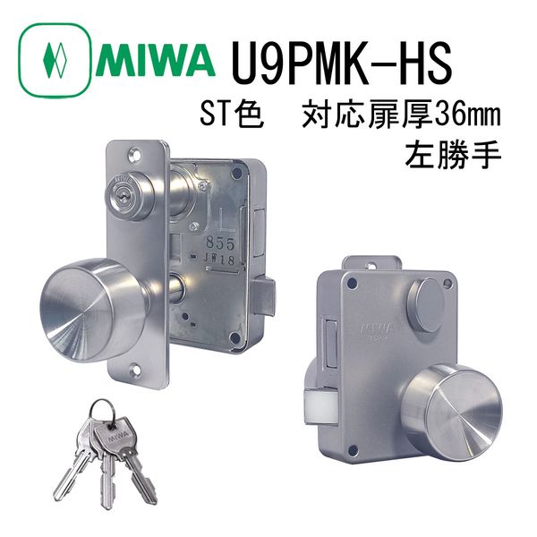 美和ロック MIWA U9 PMK-HS ST 36 左 交換用面付錠(ノブタイプ) U9PMKHSST36左
