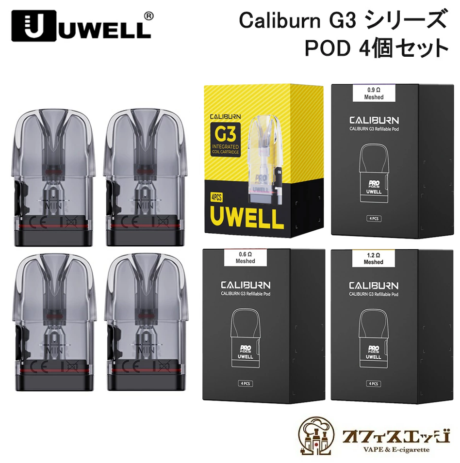 対応機種:Uwell Caliburn G3Uwell Caliburn GK3Uwell Caliburn G3 ECOUwell Caliburn GK3 TENETUwell Caliburn G3 LiteUwell Caliburn G3 PROサイドフィル容量:2.5ml※0.4Ωは3ml1パック/4個入り