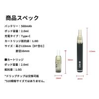 ■製品仕様 バッテリー:560mAh ポッド容量:2.0ml 充電タイプ:Type-C カートリッジ抵抗値:1.0Ω サイズ:高さ110mm【DT含むサイズ】×直径16mm 重さ:25g オートパフ機能 対応カートリッジ:Chi-bi カートリッジ