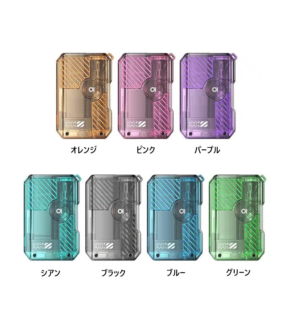 仕様: サイズ:69.0×47.4×21.6 mm POD互換性:詰め替え可能なGotekと互換性あり POD 0.8Ω/0.6ΩおよびプリフィルドGotek Pod エアフロー:調整可能なボトムエアフロー 充填:簡単なサイドフィル バッテリー容量:内蔵1200mAh ワット数:「ECO、NOR、MAX」の3段階調整可能 起動:オートパフ(自動吸引) 充電ポート:Type-C 5V/1A