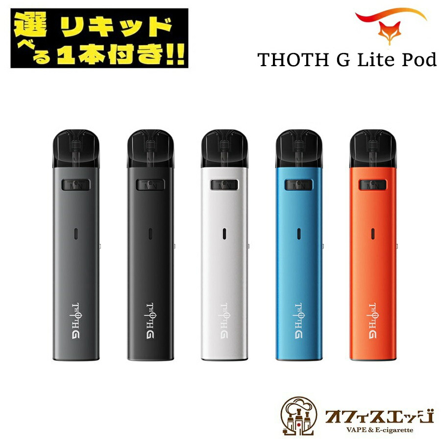新しいTHOTH G Lite、THOTH Gのライト版であなたの指先でシンプルさを体験してください。この洗練された洗練されたキットは、エレガンスとパフォーマンスを兼ね備えた強力な650mAhの内蔵バッテリーを備えています。すべてのTHOTHシリーズポッドカートリッジおよびコイルとのシームレスな互換性を考慮して設計されたTHOTH G Liteは、定電圧出力技術を利用して、一貫して優れたフレーバー体験を提供します。・スマートポッド:コイル抵抗値にあわせて、適切な出力を自動調整・バッテリー容量650mAh、最大出力35W・オートパフ・LEDバッテリーインジゲーター搭載・バッテリー残量が少なくなっても最後まで美味しく吸えます。・長寿命カートリッジ、漏れ防止構造・5つの安全保護(8秒カットオフ、過充電、短絡、定電圧、開回路)・Type-C 急速充電対応仕様材質:アルミニウム合金&PCTG寸法:23.8 x 13.8 x 113.7mm液体容量:2ml抵抗:0.6Ωバッテリー容量:650mAh、最大35W対応カートリッジ:Kumiho THOTHシリーズ POD