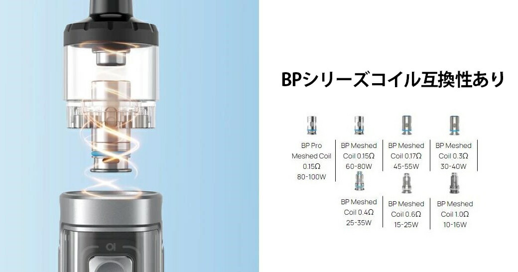 大容量バッテリー、調整可能なエアフロー、 BPコイル互換性、カスタマイズ可能なLEDライト、 カラースクリーンを備えた スタイリッシュなVAPEデバイスです。