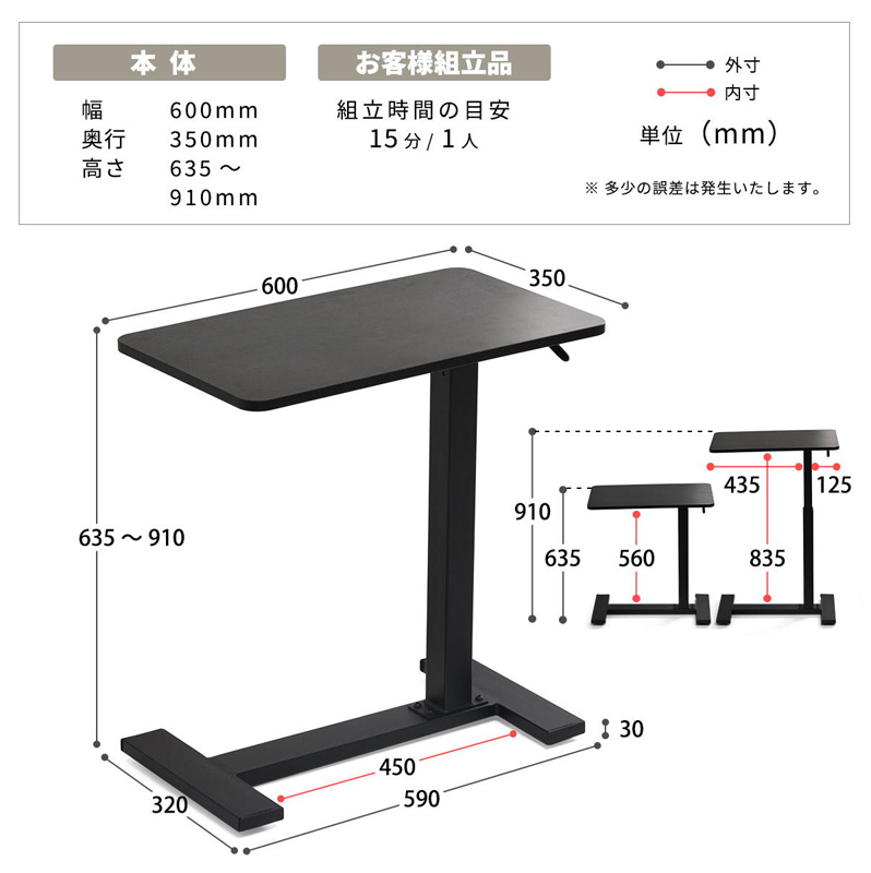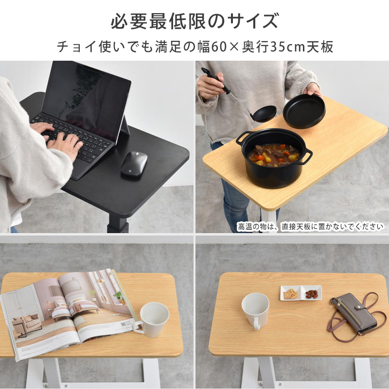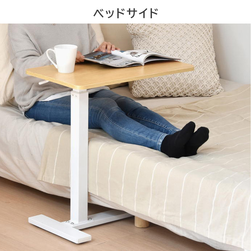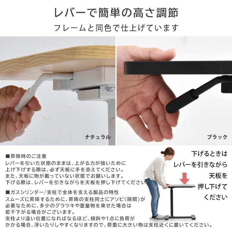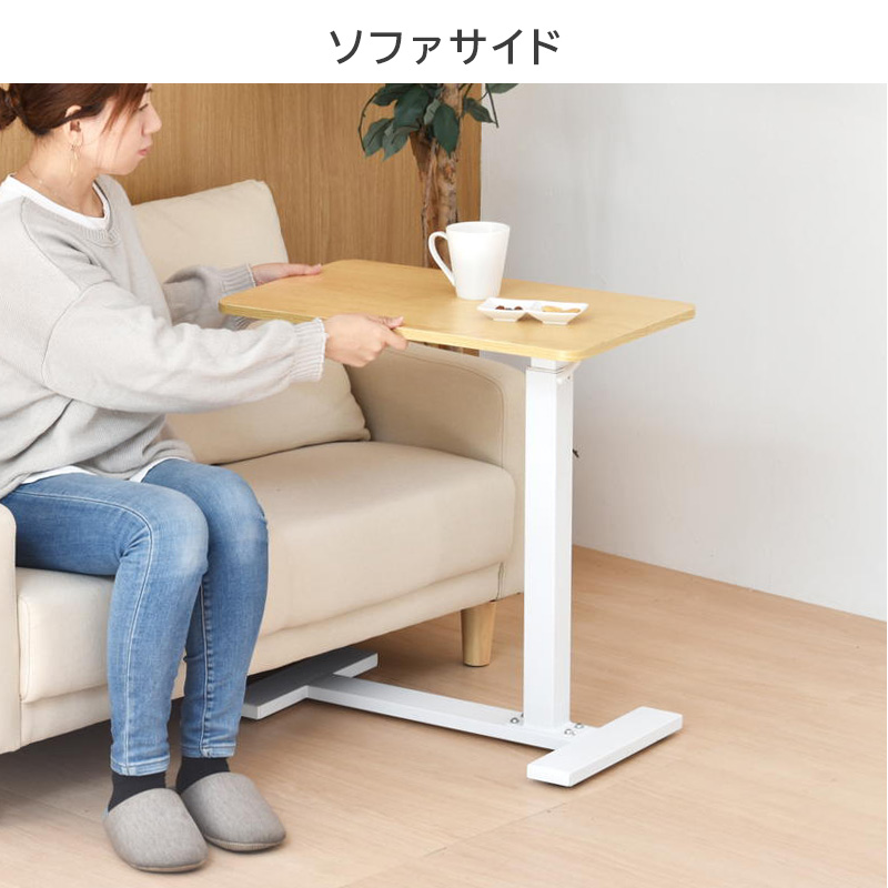 昇降式サイドテーブル リビングテーブル ソファサイド ベッドサイド カウンター 机 簡易デスク 作業台 スタンディング キッチン ダイニング ホワイト ナチュラル ブラック