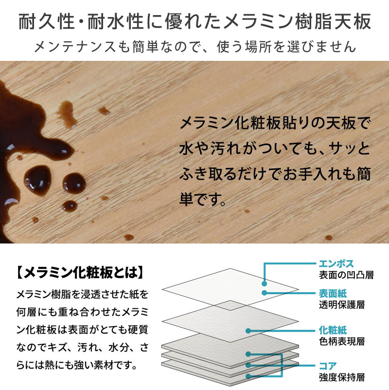 【天板】中質繊維板にメラミン貼り 【脚】スチールパイプ(粉体塗装)
