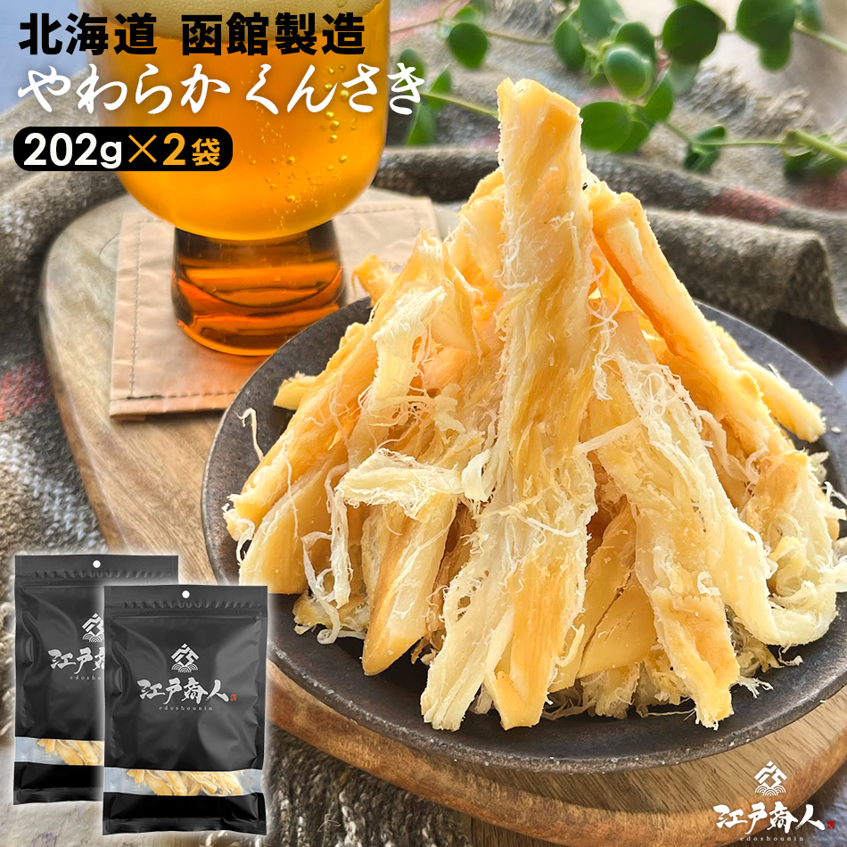 やわらかくんさき 202g×2袋 大感謝170,740袋突破 北海道 函館製造 さきいか 燻製 おつまみ 珍味 お取り寄せ 乾き物 誕生日 非常食 保存食 爆買