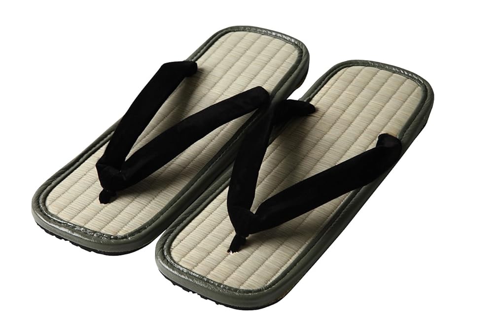 日本製「主な仕様」江戸てんの雪駄。表イグサの裏タイヤ底。底は本物のタイヤを使用しているため、ゴムのにおいがします。
