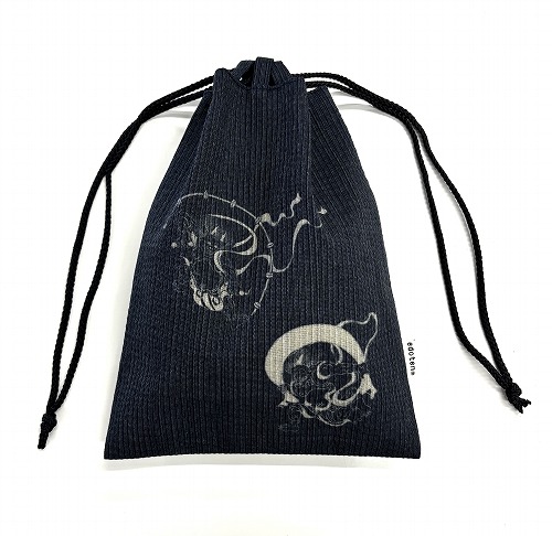 [江戸てん訳あり 信玄袋 合切袋 しじら織 抜染柄入り 綿100% 巾着 御朱印帳袋 風神雷神 グレー