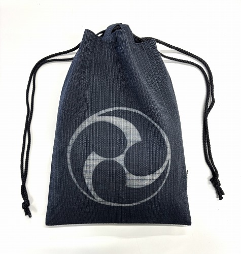 [江戸てん訳あり 信玄袋 合切袋 しじら織 抜染柄入り 綿100% 巾着 御朱印帳袋 三つ巴 グレー