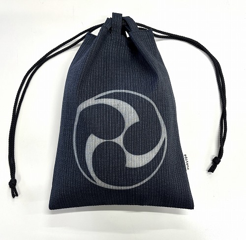[江戸てん訳あり 信玄袋 合切袋 しじら織 抜染柄入り 綿100% 巾着 御朱印帳袋 三つ巴 グレー