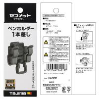 タジマ HASFP セフペンホルダー 1本差し セフメットサイドのセフ取付溝に取付けられるホルダー 黒 対応筆記具サイズ:直径7〜11mm 商品ページ