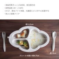 【食器とカトラリー詳細】 ・インテリアに馴染む大人なデザイン ・家庭用電子レンジ600W対応・食洗機対応 ・耐熱温度ー40℃〜+140℃ ・O-157・黄色ブ ドウ球菌・大腸菌などに対する抗菌効果99% 防カビ試験もクリア!・食材をすりつぶしながら食べさせることができる星型の突起付き。 ・セットのスプーンに合わせ、すくいやすいようにコーナーをすべて曲線に。 底にくぼみを持たせることで食材が中央に集まるつくりにしました。 スープなどの水分量の多いお料理もいれられる深さ(約3cm)のあるワンプレートで、お皿洗いの手間も減らせます。 ・表面の粉に見える斑点は原材料である竹粉です。自然由来なので害はありません。樹脂には見えないあたたかでマットな質感をお楽しみください。