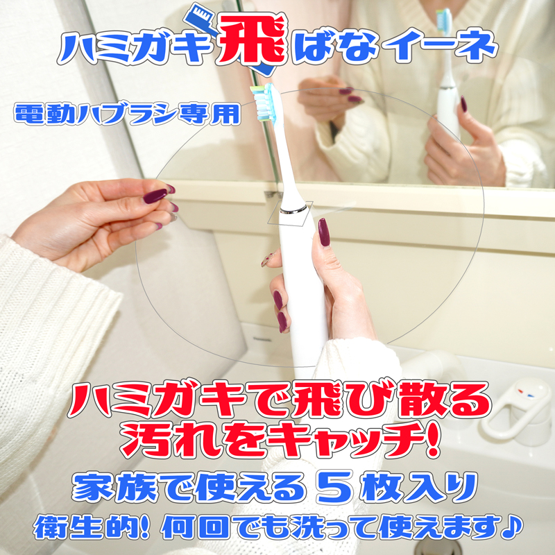 ハミガキ飛ばなイーネ【5枚入 電動ハブラシ専用 全年齢対象】飛沫汚れをキャッチするマウスシールド 洗って何回も使えます♪ クリア素材 飛沫防止 日本製