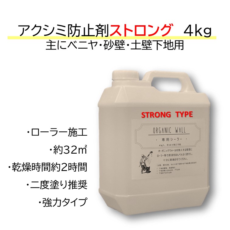【強力タイプ4kg】DIY 珪藻土 漆喰 下地処理 リフォーム 室内壁 内装 シーラー 砂壁 土壁 ベニヤ アク・シミ防止剤ストロング オーガニックウォール