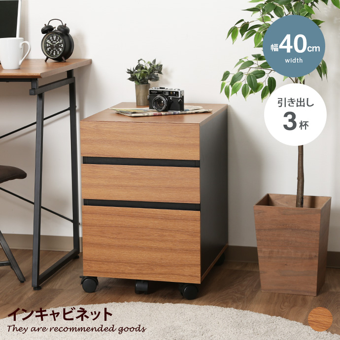 サイドチェスト デスクワゴン キャビネット デスクチェスト 書類ワゴン チェスト パソコンラック 木目 キャスター付き パソコンデスク 木製