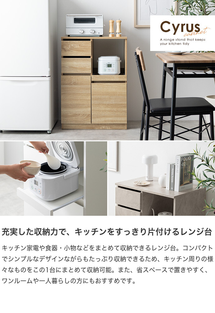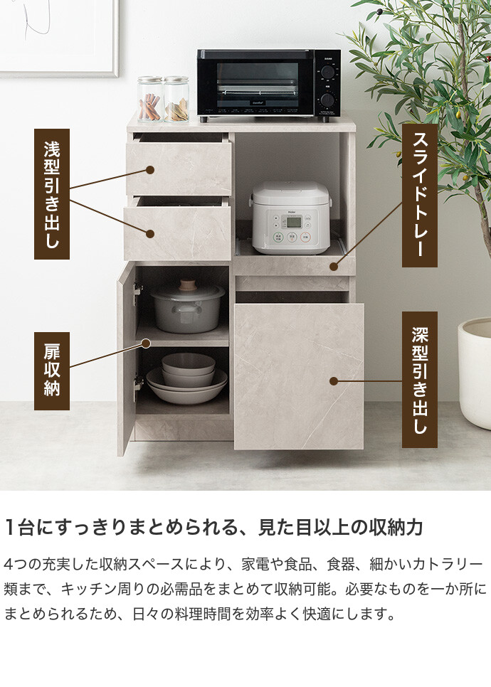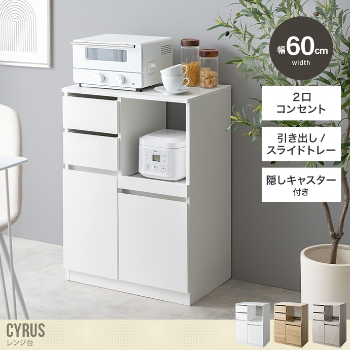 レンジ台 レンジボード レンジラック 食器棚 キッチンカウンター キッチンラック キャスター付き 60幅 キッチン収納 スライドトレー コンセント付き