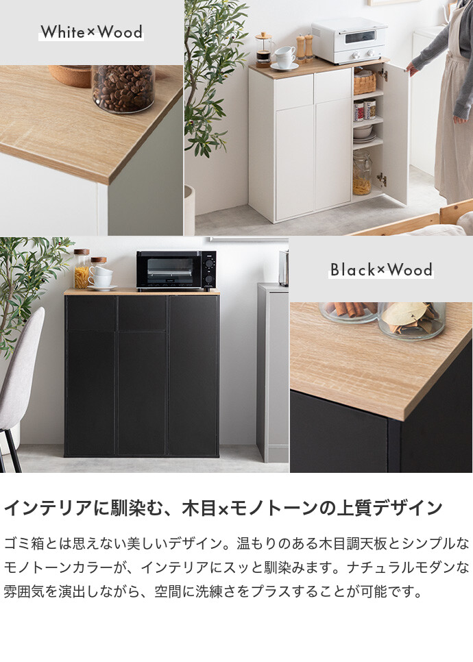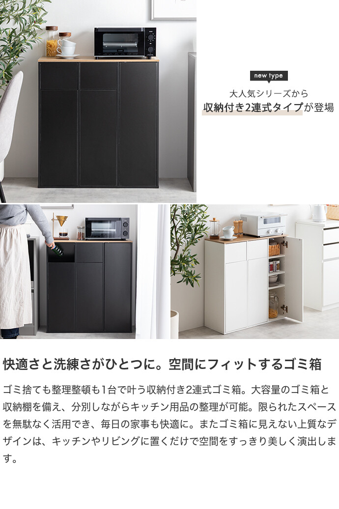 ゴミ箱 分別 2連 収納付き ダストボックス ごみ 縦型 ふた付 フタ 蓋 おしゃれ おすすめ キッチンカウンター お洒落 シンプル リビング インテリア 45l