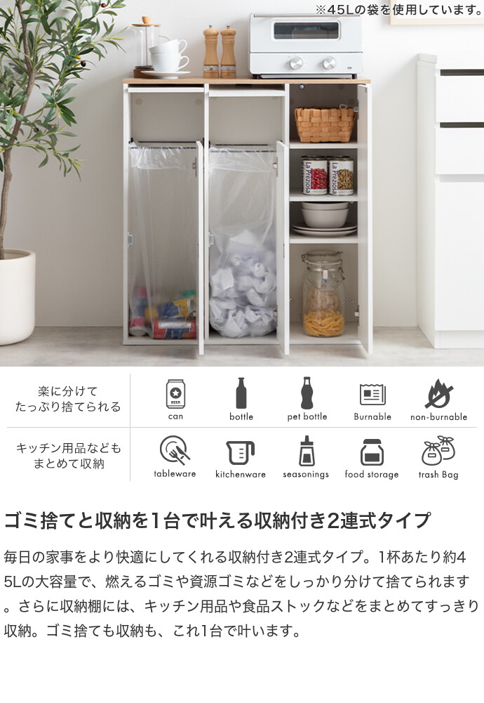 ※45Lはゴミ袋サイズの目安であり、容積を保証する表現ではありません