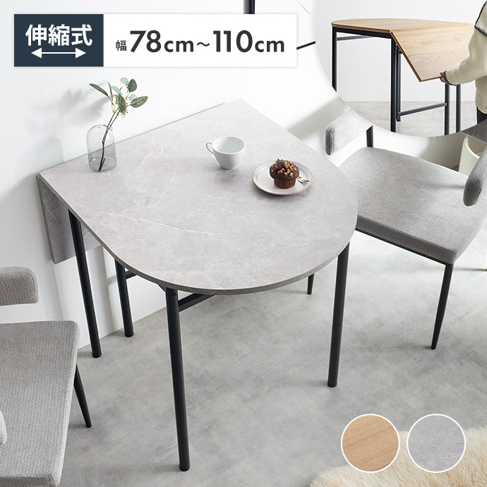 ダイニングテーブル テーブル 机 バタフライ 伸縮 ストーン 石目柄 木製 木目 一人暮らし コンパクト 伸長式 半円 折りたたみ 2人 3人 省スペース 食卓