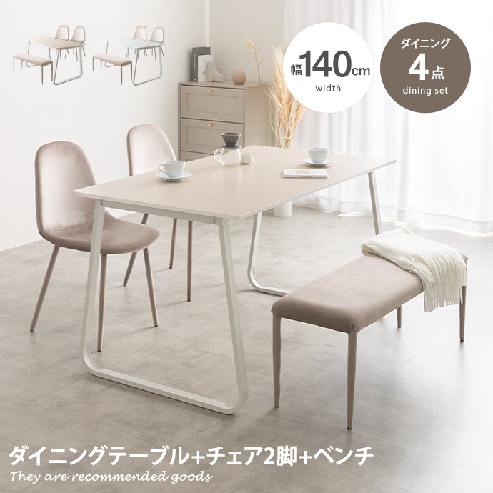 ダイニングセット テーブル チェアー ベンチ 食卓 リビング キッチン 4点 カフェ 椅子 イス いす 長椅子 4人掛け 幅140 大理石柄 バイカラー ベロア
