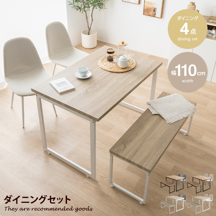 ダイニングセット テーブル 机 食卓 キッチン 学習机 長方形 チェアー 椅子 イス ベンチ コンパクト 省スペース 奥行70 4点 木目 ウッド スクエア脚
