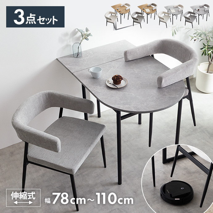 ダイニングセット ダイニングテーブル ダイニングチェア セット 机 椅子 2人掛け 3点セット バタフライ 伸縮 ストーン 木製 木目 一人暮らし コンパクト