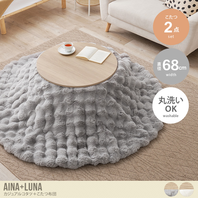 こたつセット 68cm×68cm 190cm×190cm コタツ テーブル 2点 掛け布団 薄掛け 軽量 洗える 炬燵 机 円形 丸型 毛布 洗濯可 丸洗い ラビットファー調 ロー