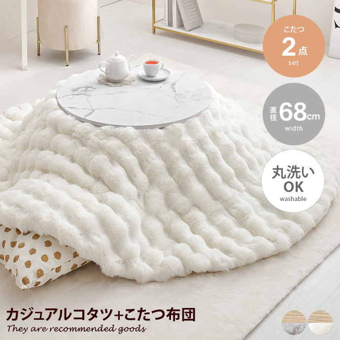 こたつセット 68cm×68cm 190cm×190cm 2点 コタツ 炬燵 テーブル 机 丸型 円形 布団 薄掛け ロー センター 石目 大理石調 ストーン 1R 一人暮らし