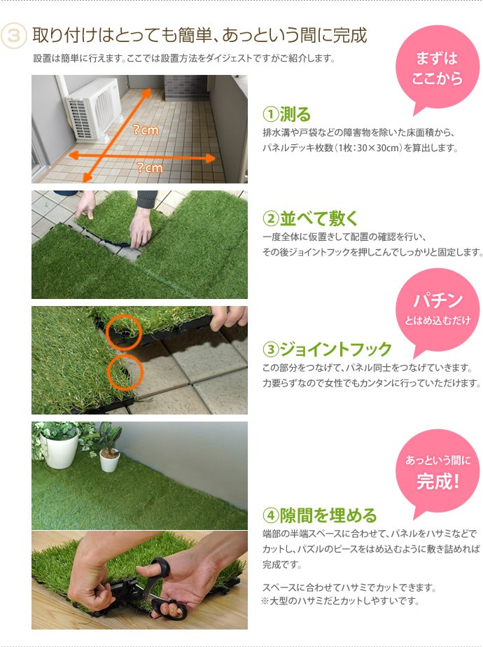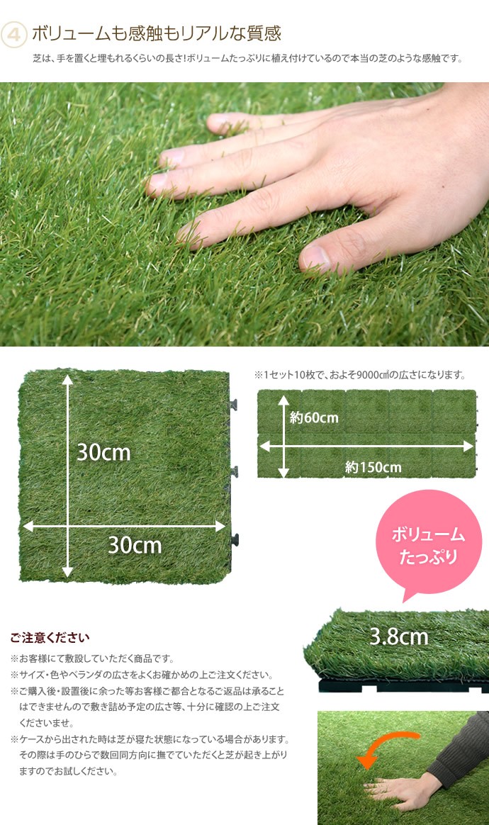 ※ご購入後・設置後に余った等お客様ご都合となるご返品は承ることはできませんので敷き詰め予定の広さ等、十分に確認の上ご注文くださいませ。