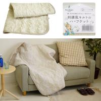 ハーフケット 100×140cm 刺繍風キルト Peter Rabbit(TM) ピーターラビット(TM) コットン リバーシブル 洗濯OK ひざ掛け オールシーズン