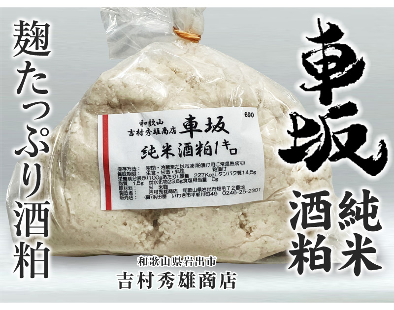 和歌山県 車坂純米酒粕 麹多めの酒粕 1kg●蔵元:和歌山県 吉村秀雄商店