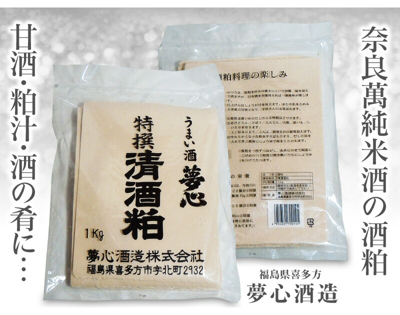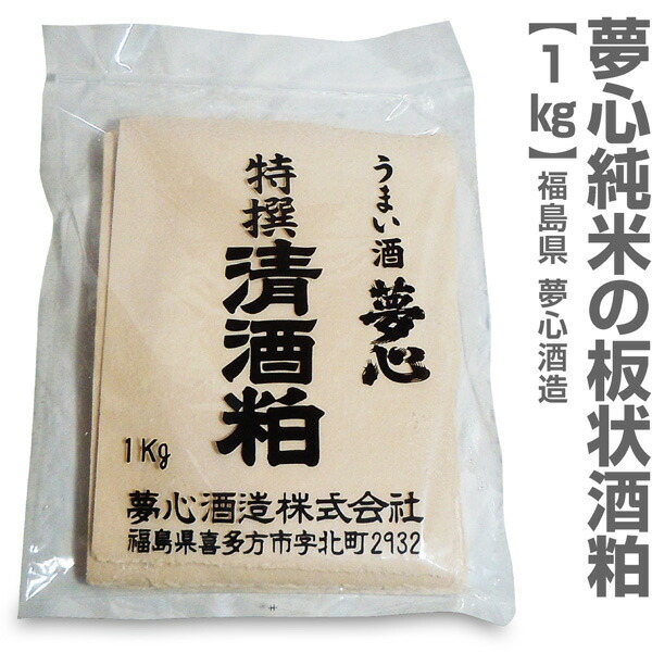 会津夢心酒造 純米酒の板状酒粕 1kg●蔵元:福島県会津喜多方 夢心酒造